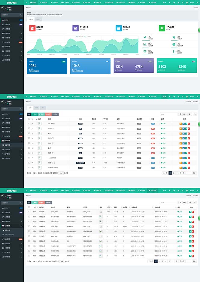 7,强大后台管理(数据大屏展示,所有数据一目了然,实时监控平台情况,为你的运营营销提供数据支持)